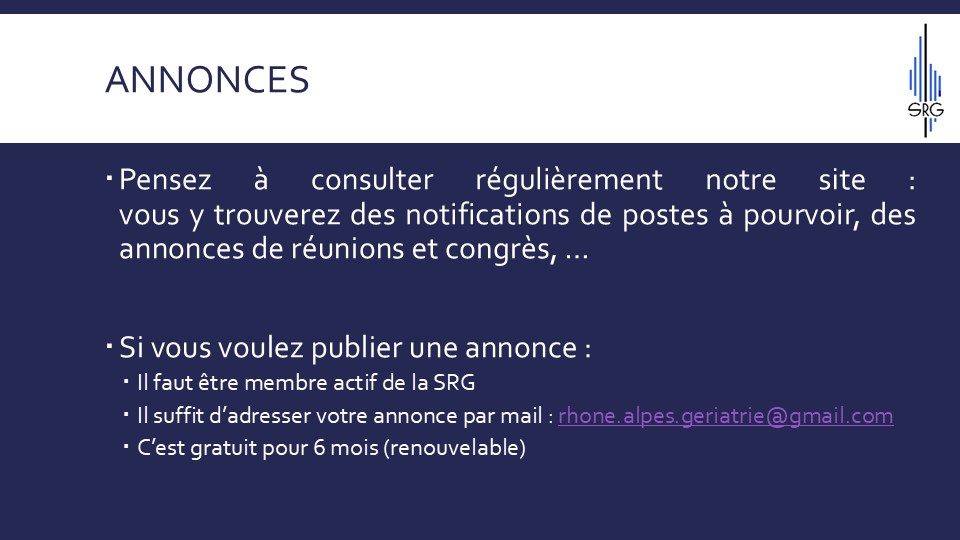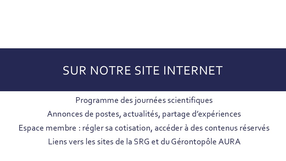 La Société Rhônalpine de Gériatrie est une filiale régionale de la SFGG (Société Française de Gériatrie et Gérontologie)