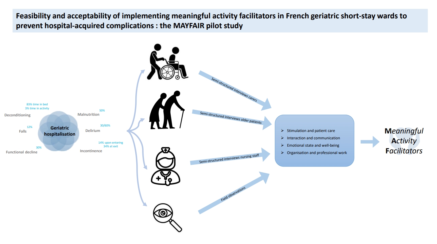 Feasibility and acceptability of implementing meaningful activity facilitators in French geriatric short-stay wards to prevent hospital-acquired complications : the MAYFAIR pilot study.